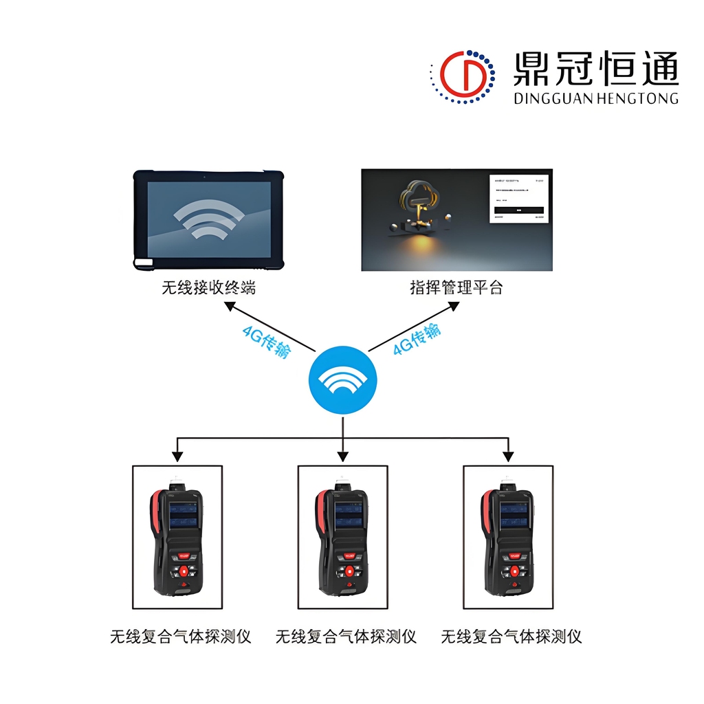 DG-F1600s型無線復合氣體探測儀,具備泵吸采樣方式,可檢測6種有毒有害氣體;具備4G無線傳輸功能,可將檢測氣體數據實時傳輸到后端指揮平臺,傳輸距離不受距離限制,實現同步報警功能。